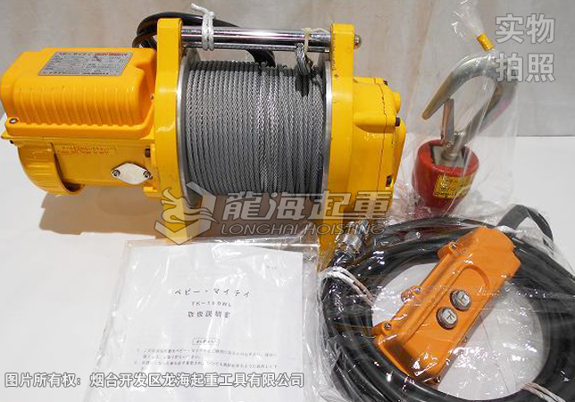 ★TKK TK-150WL型电动卷扬机,载重150kg,轻量化设计,小巧便捷,根据钢丝绳的缠绕方式,可自由改变其负载能力与牵引方向。